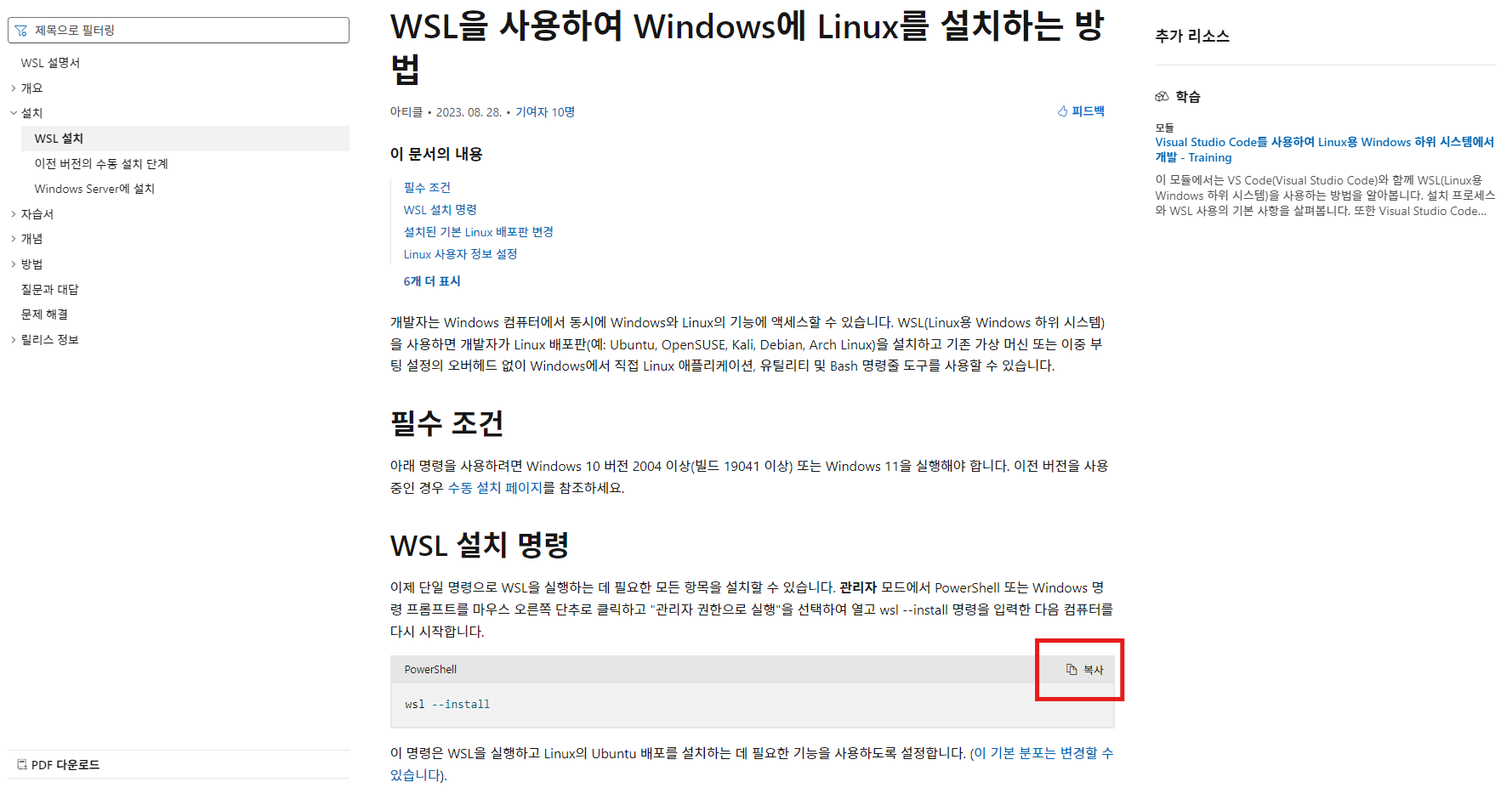 - WSL install ➜ 2. Version Check ➜ 3. WSL 실행 확인
