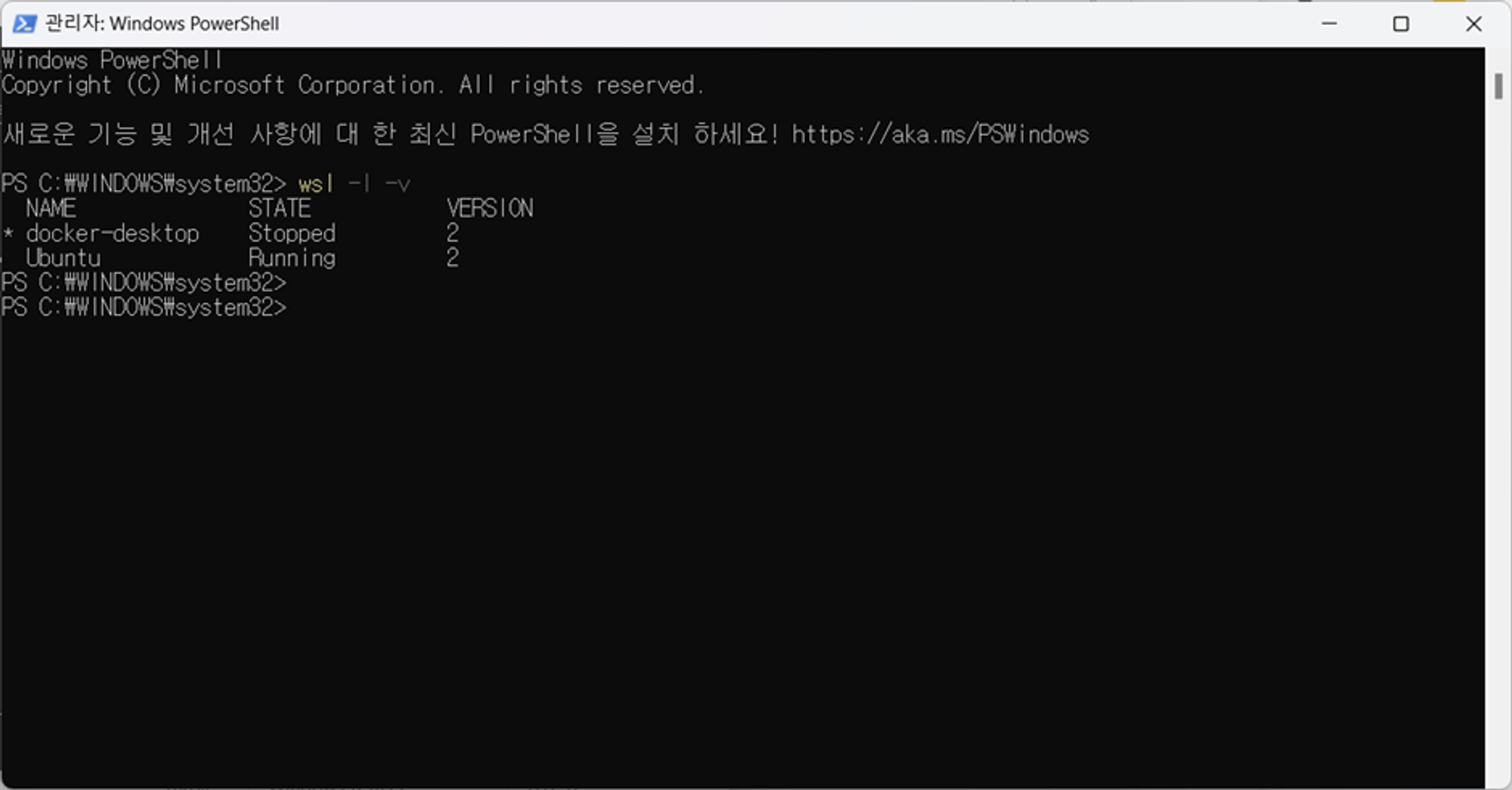 wsl --set-default Ubuntu위의 코드를 실행한 뒤 wsl --list –verbose를 해보면 기본 계정(*의 위치)가 바뀌어 있을 것이다.